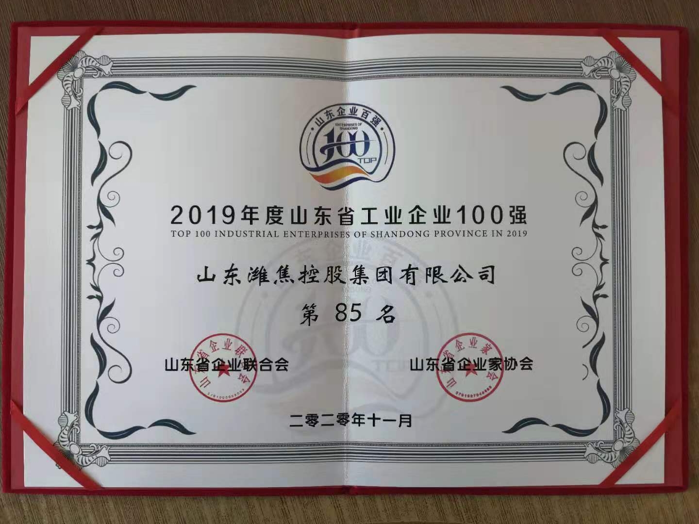 11月11日,山東省工業(yè)和信息化廳、山東省企業(yè)聯(lián)合會(huì)聯(lián)合發(fā)布了2019年山東省綜合百強(qiáng)和工業(yè)百強(qiáng)名單,山東濰焦控股集團(tuán)有限公司榮登山東省工業(yè)百強(qiáng)企業(yè)榜單,位列第85位。