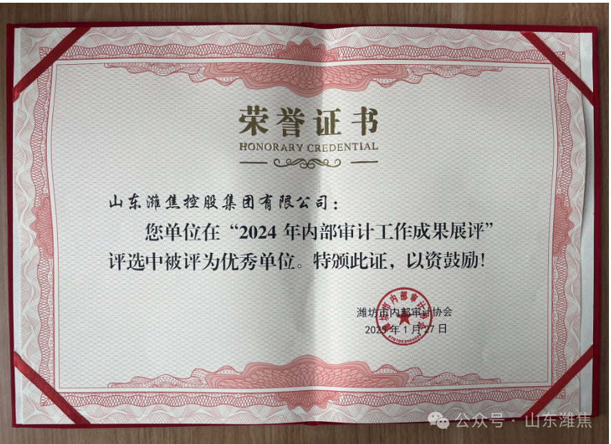 集團(tuán)公司榮獲濰坊市“2024年內(nèi)部審計(jì)工作成果展評(píng)優(yōu)秀單位”