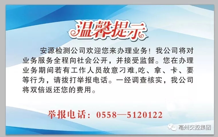 專屬名片正面以安源檢測公司的窗口形象為背景,印有服務(wù)項目、宗旨理念、咨詢電話、公司地址等;背面印有安源檢測公司給予車主的溫馨提示以及舉報電話,具有攜帶方便、內(nèi)容具體、形式新穎的特點。