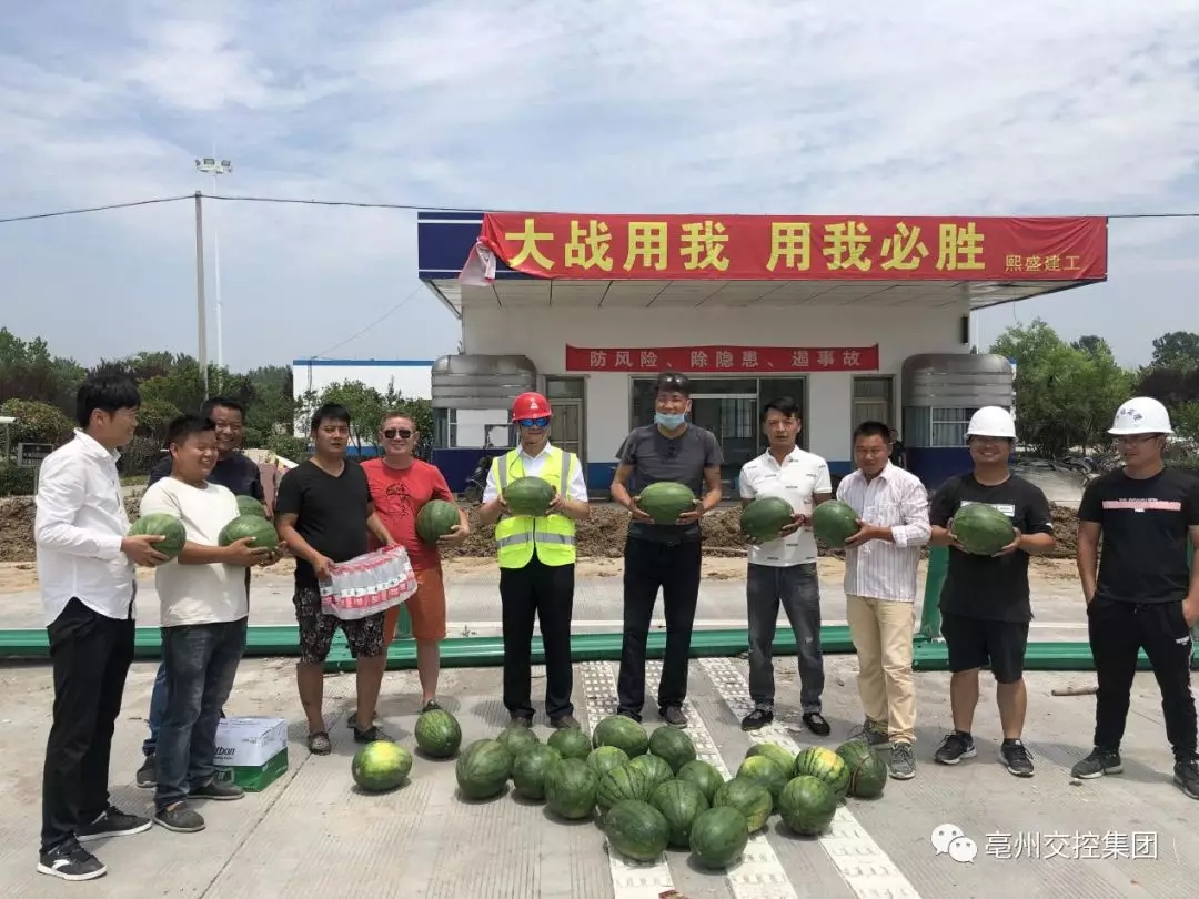 為切實(shí)做好夏季施工現(xiàn)場防暑降溫工作,保障施工人員的身體健康,確保施工項(xiàng)目有序推進(jìn),6月29日中午,和諧中建總經(jīng)理張彬根帶領(lǐng)綜合部員工到省道309項(xiàng)目開展夏日送清涼活動,為施工人員送上西瓜和飲用水。