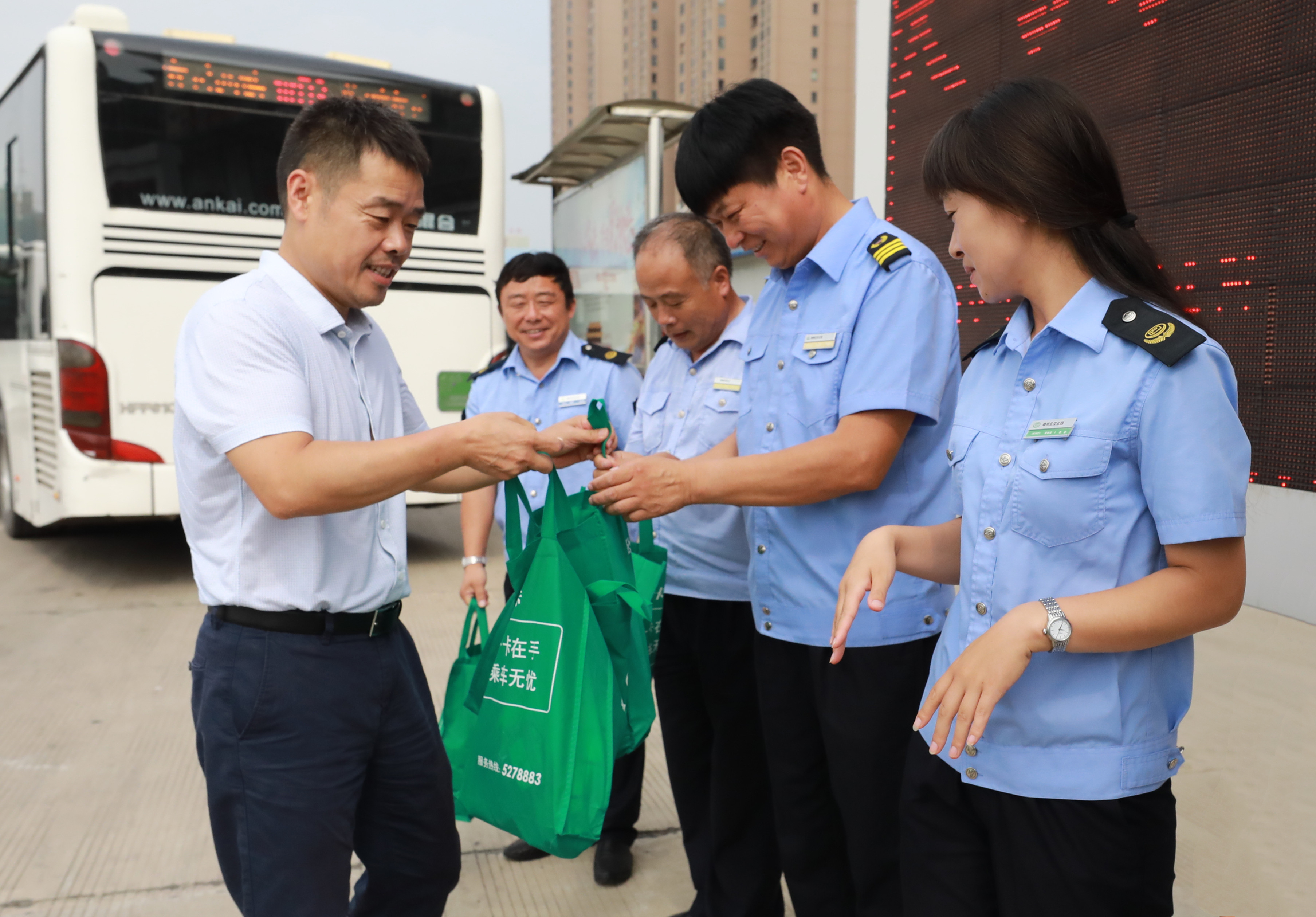 每到一處,慰問小組送上花露水、毛巾、白糖等防暑降溫物品,叮囑大家在做好一線服務(wù)工作的同時,一定要注意防暑降溫、保重身體,以最佳的精神狀態(tài)為廣大市民乘客提供優(yōu)質(zhì)的公交出行服務(wù)。