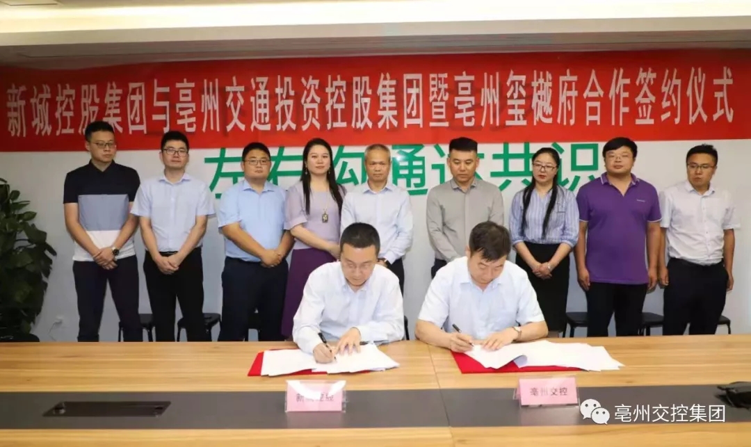 8月13日下午,集團黨委書記、董事長王鍇帶領戰(zhàn)發(fā)部、法務部等相關負責人前往新城控股集團徐州區(qū)域公司,在友好熱烈的氣氛中,與新城控股集團就亳州璽樾府房產項目簽訂合作協議。