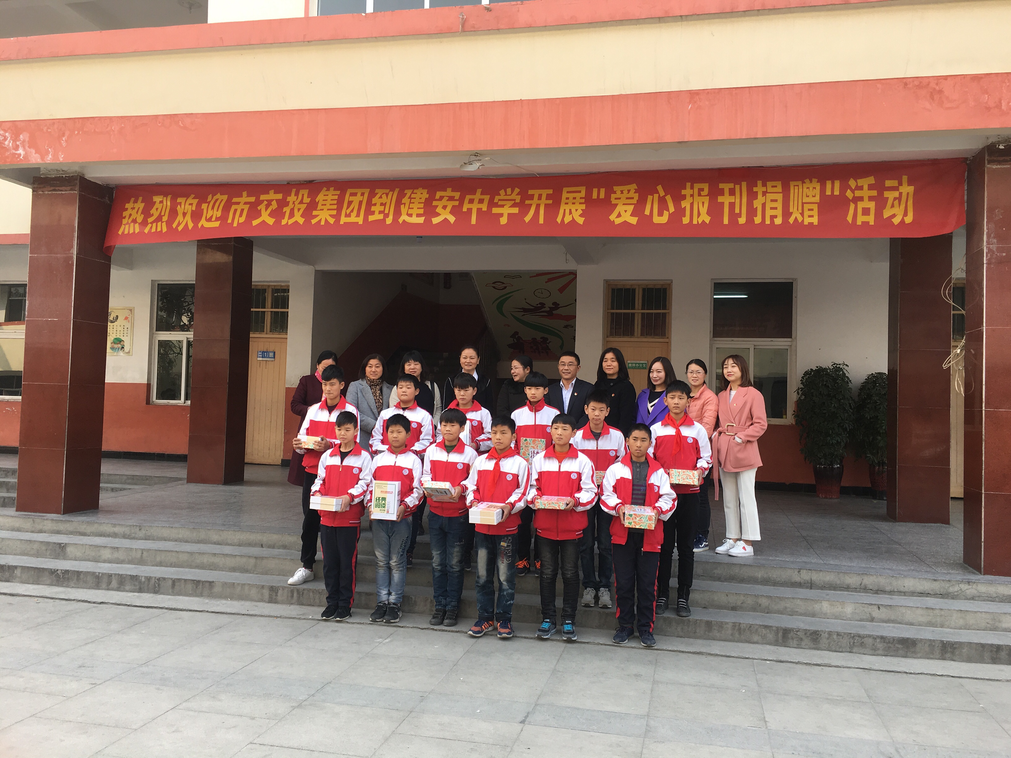 11月15日,為關(guān)愛(ài)留守兒童,豐富“黨員活動(dòng)日”主題活動(dòng),交投集團(tuán)在建安中學(xué)開(kāi)展“愛(ài)心報(bào)刊”捐贈(zèng)留守兒童公益活動(dòng)。同時(shí),按照“4+X”內(nèi)容,全體黨員共同頌唱了國(guó)歌,重溫入黨誓詞,按期交納了當(dāng)月黨費(fèi),集中學(xué)習(xí)了《黨的十九大輔導(dǎo)讀本》部分內(nèi)容。