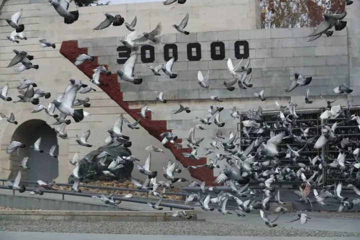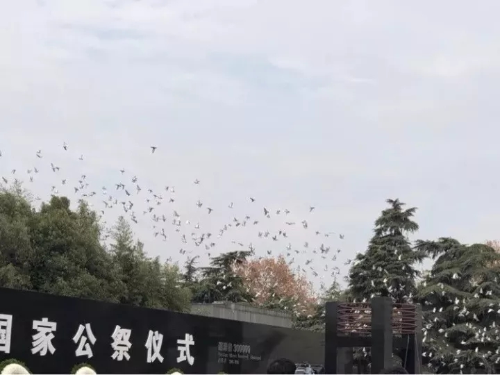 ▲ 南京大屠殺死難者國家公祭儀式現(xiàn)場放飛和平鴿。 新華社記者 龐興雷 攝