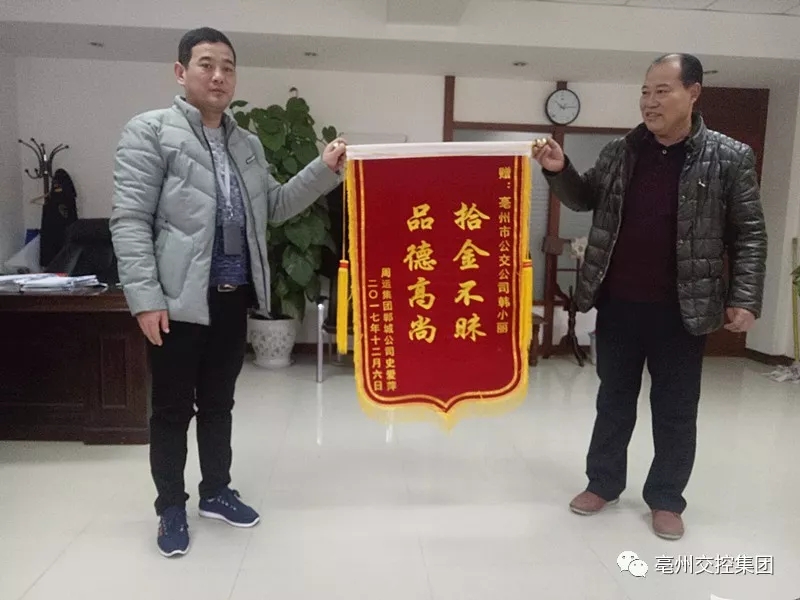 為表心意,同時更為鼓勵這種拾金不昧行為。史愛萍特送上一面錦旗。我們在此,也為韓小麗鼓掌,其他的駕駛員也要向她學(xué)習(xí)!