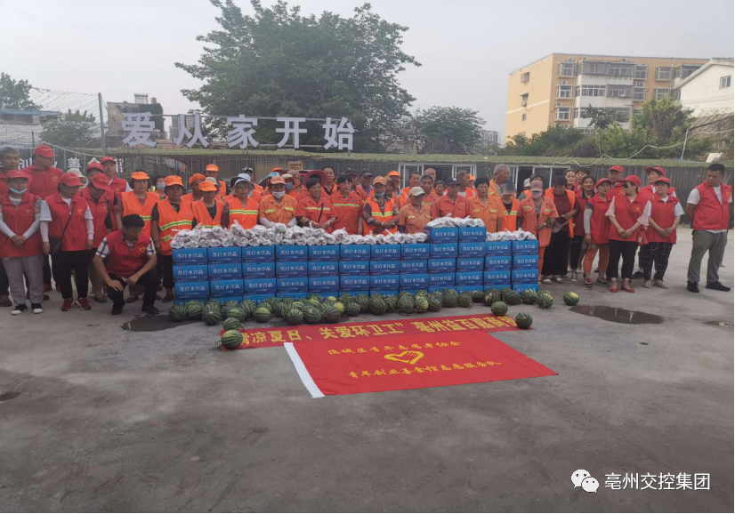 2020年5月26日下午5時,為了感謝城市美容師的辛勤付出,譙城區(qū)青年志愿者協(xié)會聯(lián)合青年創(chuàng)業(yè)善食館為亳州上善環(huán)保公司30名環(huán)衛(wèi)工人代表送來了蘇打水、西瓜、毛巾、肥皂、風油精等防暑用品,讓他們在炎熱中感受到一絲清涼。