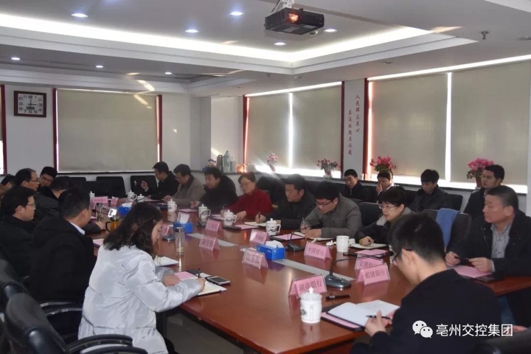 1月30日下午3點(diǎn),集團(tuán)在八樓會(huì)議室召開亳州交控集團(tuán)銀企座談會(huì)。會(huì)議邀請(qǐng)了市交通局、市國資委及徽商銀行、工商銀行、中國銀行、農(nóng)業(yè)銀行、建設(shè)銀行、農(nóng)業(yè)發(fā)展銀行、藥都銀行等10家銀行代表與會(huì)。