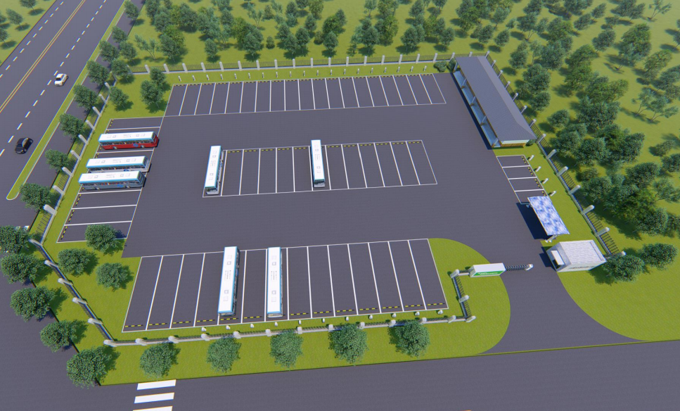 臨漳公園公交首末站位于科技路與利辛路交叉口西北角臨漳公園北側,總用地面積6667平方米,總建筑面積192.02平方米,主要包括門衛(wèi)室、路隊長室、休息室、餐廳、維修工具間、衛(wèi)生間等,設置公交車停車位55個,充電樁30個,預計11月份可投入使用。
