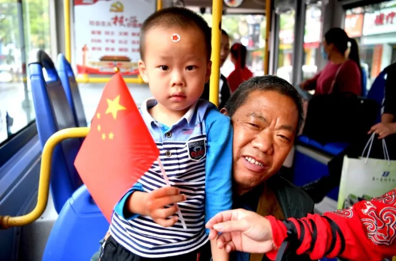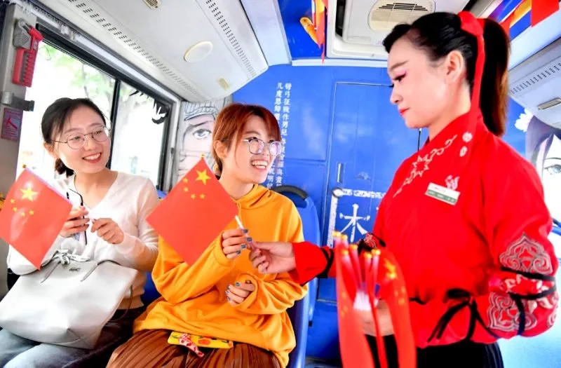 當(dāng)日,安徽省亳州交控集團(tuán)組織公交5路木蘭線駕駛員開展“紅旗飄飄迎國慶”主題活動,公交車內(nèi)都懸掛起了五星紅旗,公交車駕駛員還沿途為乘客送上小紅旗和愛心貼紙,讓市民提前感受到國慶節(jié)的喜慶氣氛。