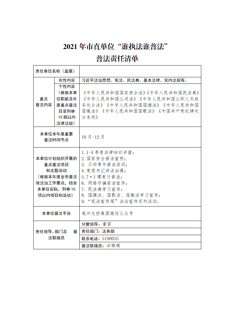 2021年市直單位“誰執(zhí)法誰普法”普法責任清單