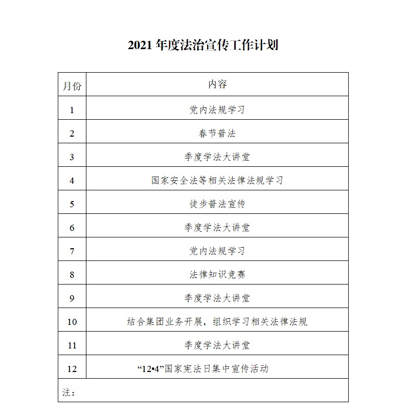 2021年度法治宣傳工作計(jì)劃