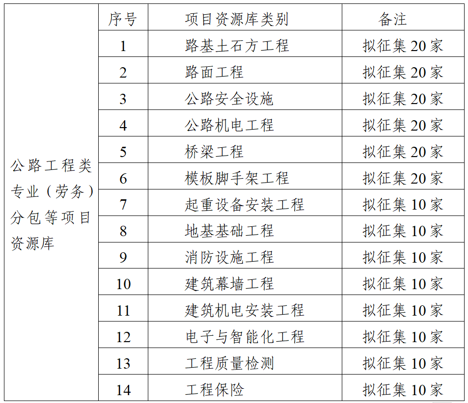 (一)項目概況:為保證公路工程等項目的招標(biāo)效率和質(zhì)量,安徽通康建設(shè)結(jié)合實際情況,擬建立安徽通康建設(shè)工程有限公司專業(yè)(勞務(wù))分包項目資源庫。根據(jù)有關(guān)法律法規(guī),現(xiàn)面向社會公開征集公路工程類專業(yè)(勞務(wù))分包等項目資源庫供應(yīng)商。