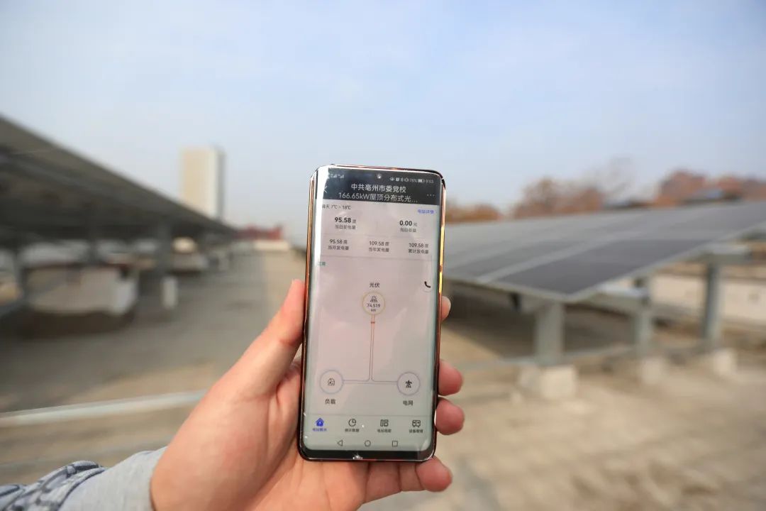 項目位于亳州市委黨校,利用閑置屋頂資源1300㎡,總裝機容量166.65kW,采用“自發(fā)自用、余電上網(wǎng)”模式,年平均發(fā)電量可達(dá)19萬kW·h,運營期25年預(yù)計總發(fā)電量約475萬kW·h,可節(jié)約標(biāo)準(zhǔn)煤約1356噸,減少二氧化碳排放約3728噸。