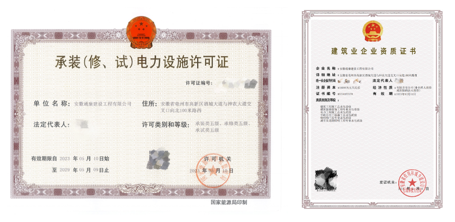 近日,交控集團(tuán)下屬通康公司資質(zhì)提升工作再傳喜訊,經(jīng)資質(zhì)主管部門核準(zhǔn),通康公司成功取得電力工程施工總承包二級(jí)和承裝承修承試五級(jí)施工許可證,為亳州市首家獲得該資質(zhì)證書的國(guó)有全資企業(yè)。