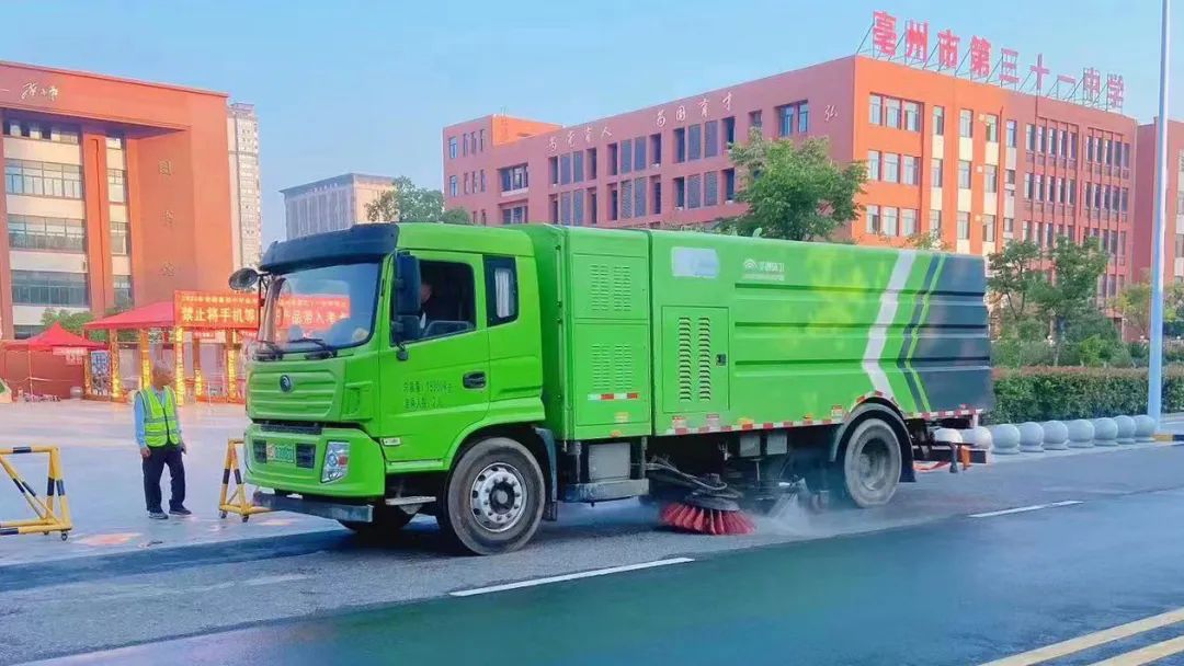 為營造清潔、舒適、安靜的考試環(huán)境,上善環(huán)保公司所有環(huán)衛(wèi)作業(yè)車輛提前上路,實施“消音”作業(yè),考點周邊作業(yè)時禁止鳴笛,灑水車關(guān)閉提示音、減速慢行。環(huán)衛(wèi)片區(qū)經(jīng)理提前排查考點周邊衛(wèi)生情況,組織環(huán)衛(wèi)工人對垃圾桶、果殼箱及周邊地面進行深度保潔,考試期間增派保潔人員,及時撿拾煙頭、廢紙、小廣告等,確??紙鲋苓吳逅瑵崈?。