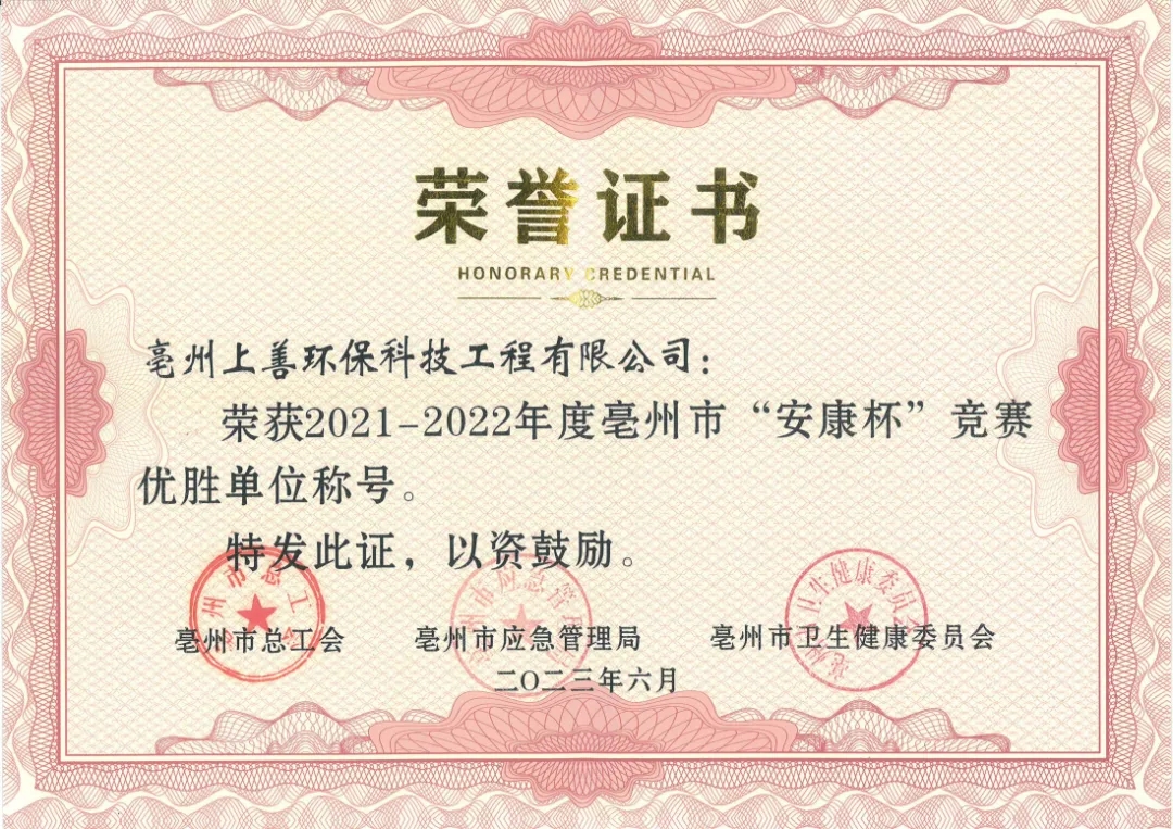 2021-2022年度亳州市“安康杯”競(jìng)賽優(yōu)勝單位