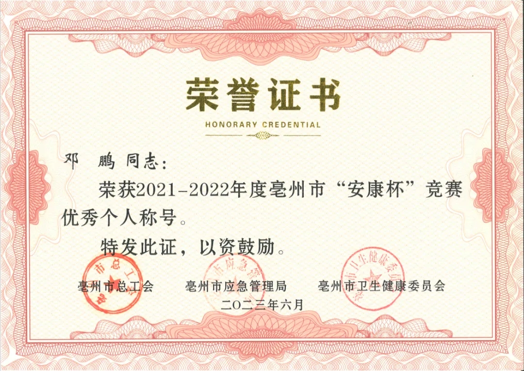 2021-2022年度亳州市“安康杯”競(jìng)賽優(yōu)秀個(gè)人