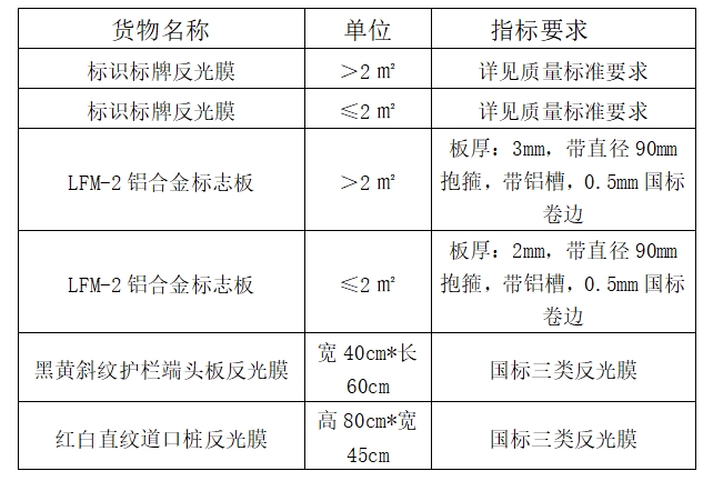 2.采購單個(gè)面積小于等于2㎡的標(biāo)識(shí)標(biāo)牌反光膜成品(含噴繪)300㎡;包含底膜和字膜并按招標(biāo)方要求加工成相應(yīng)規(guī)格尺寸。