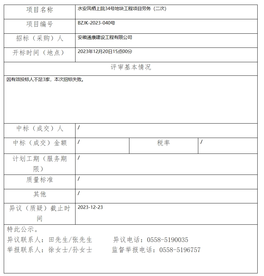 水安鳳棲上院34號地塊工程項(xiàng)目勞務(wù)(二次)中標(biāo)(成交)結(jié)果公示