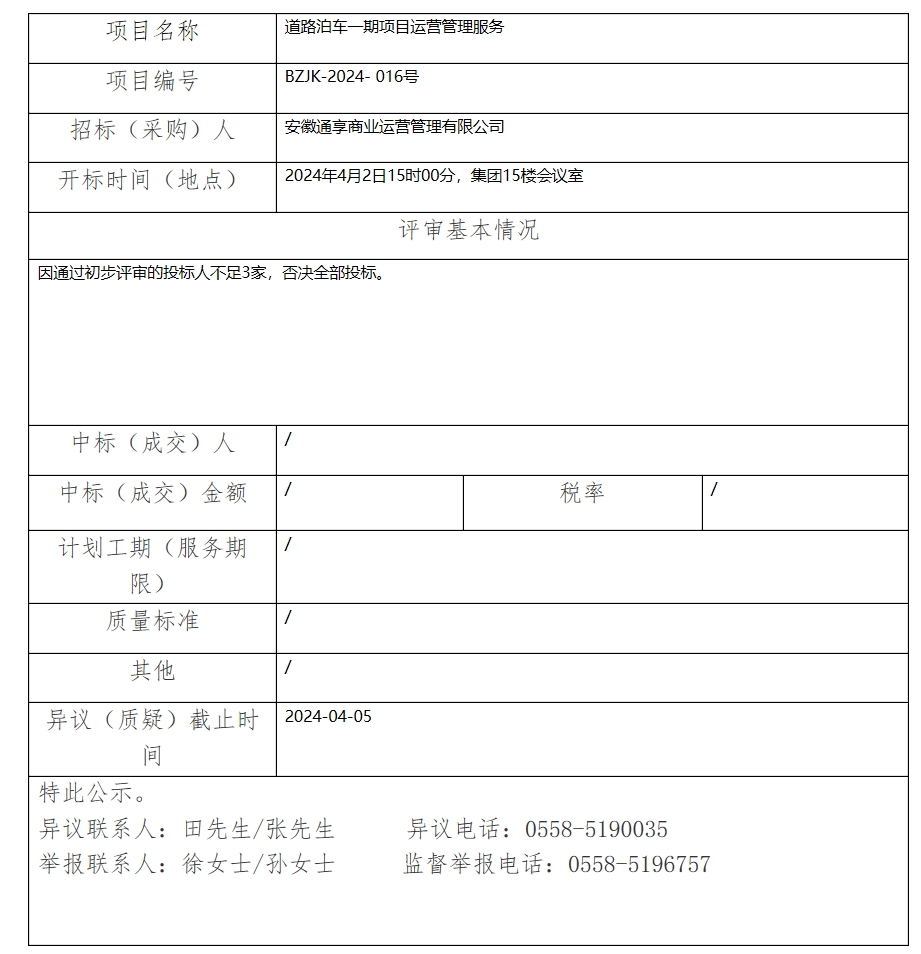 道路泊車一期項(xiàng)目運(yùn)營(yíng)管理服務(wù)中標(biāo)(成交)結(jié)果公示