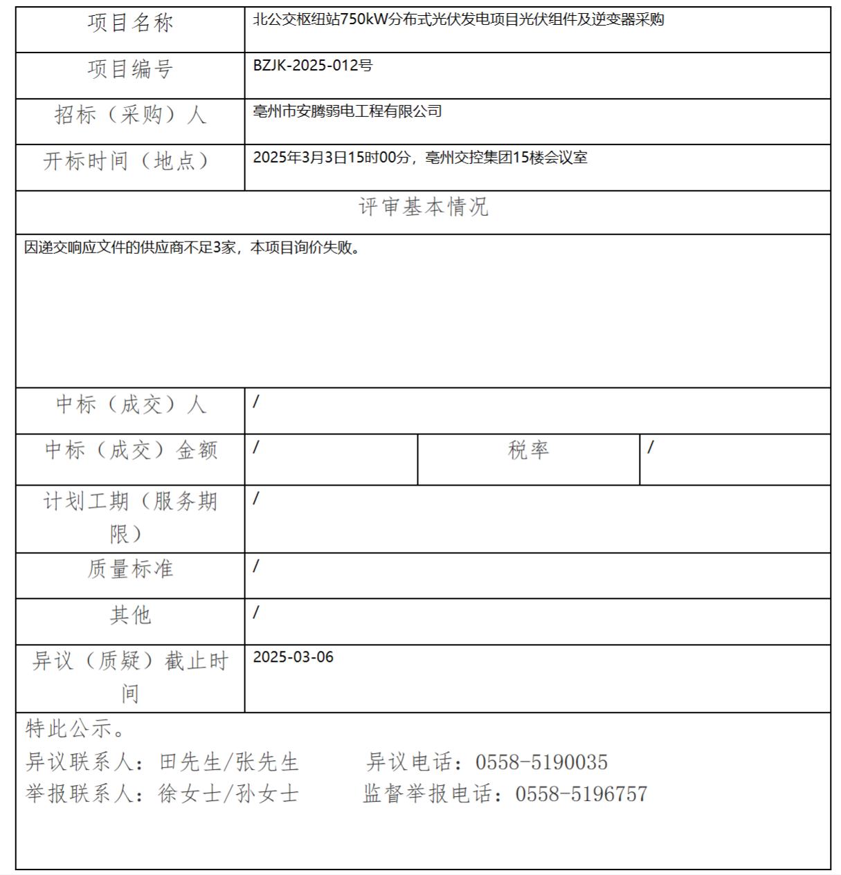 北公交樞紐站750kW分布式光伏發(fā)電項(xiàng)目光伏組件及逆變器采購(gòu)中標(biāo)(成交)結(jié)果公示