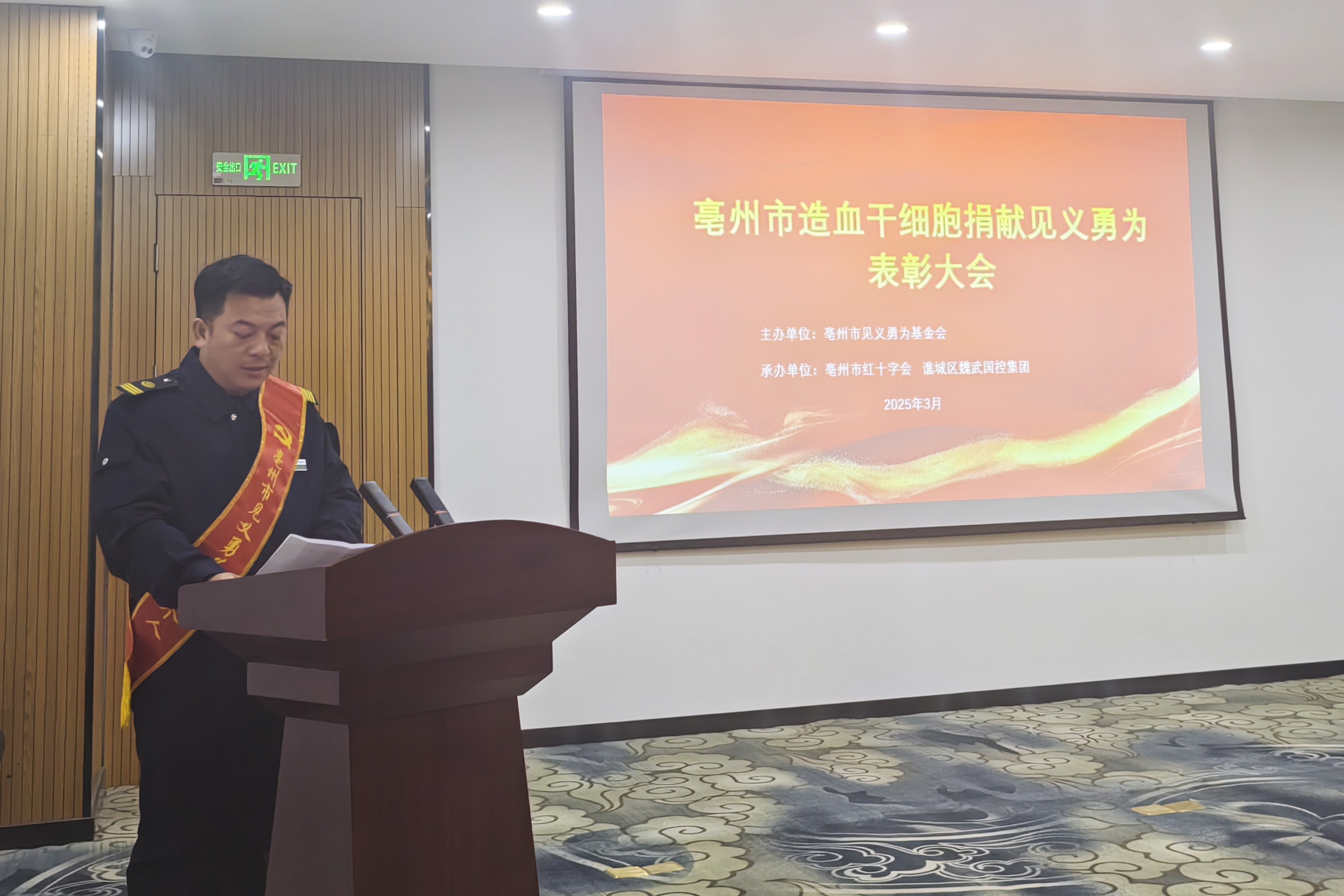 為進一步弘揚“人道、博愛、奉獻”紅十字精神和新時代見義勇為精神,營造良好的社會氛圍,由亳州市見義勇為基金會主辦,亳州市紅十字會承辦的亳州市造血干細胞捐獻見義勇為表彰活動于3月14日在譙城區(qū)魏武國控會議室舉行。公交集團81路戰(zhàn)友車隊駕駛員任兵榮獲“亳州市見義勇為先進個人”榮譽。