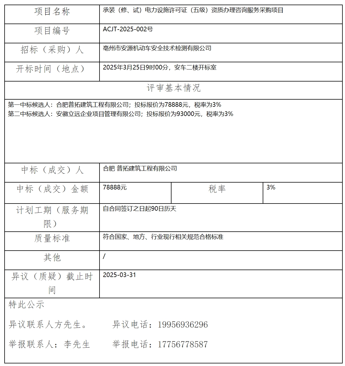 承裝(修、試)電力設(shè)施許可證(五級)資質(zhì)辦理咨詢服務(wù)采購項目中標(biāo)(成交)結(jié)果公示