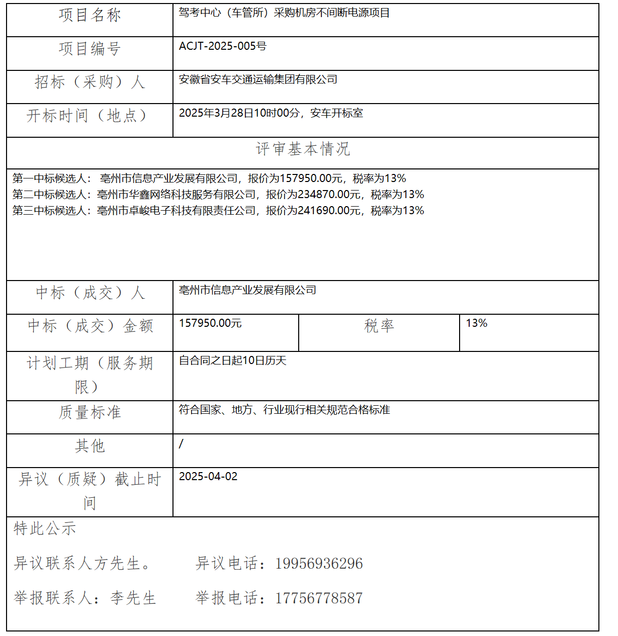 駕考中心(車管所)采購機房不間斷電源項目中標(成交)結(jié)果公示