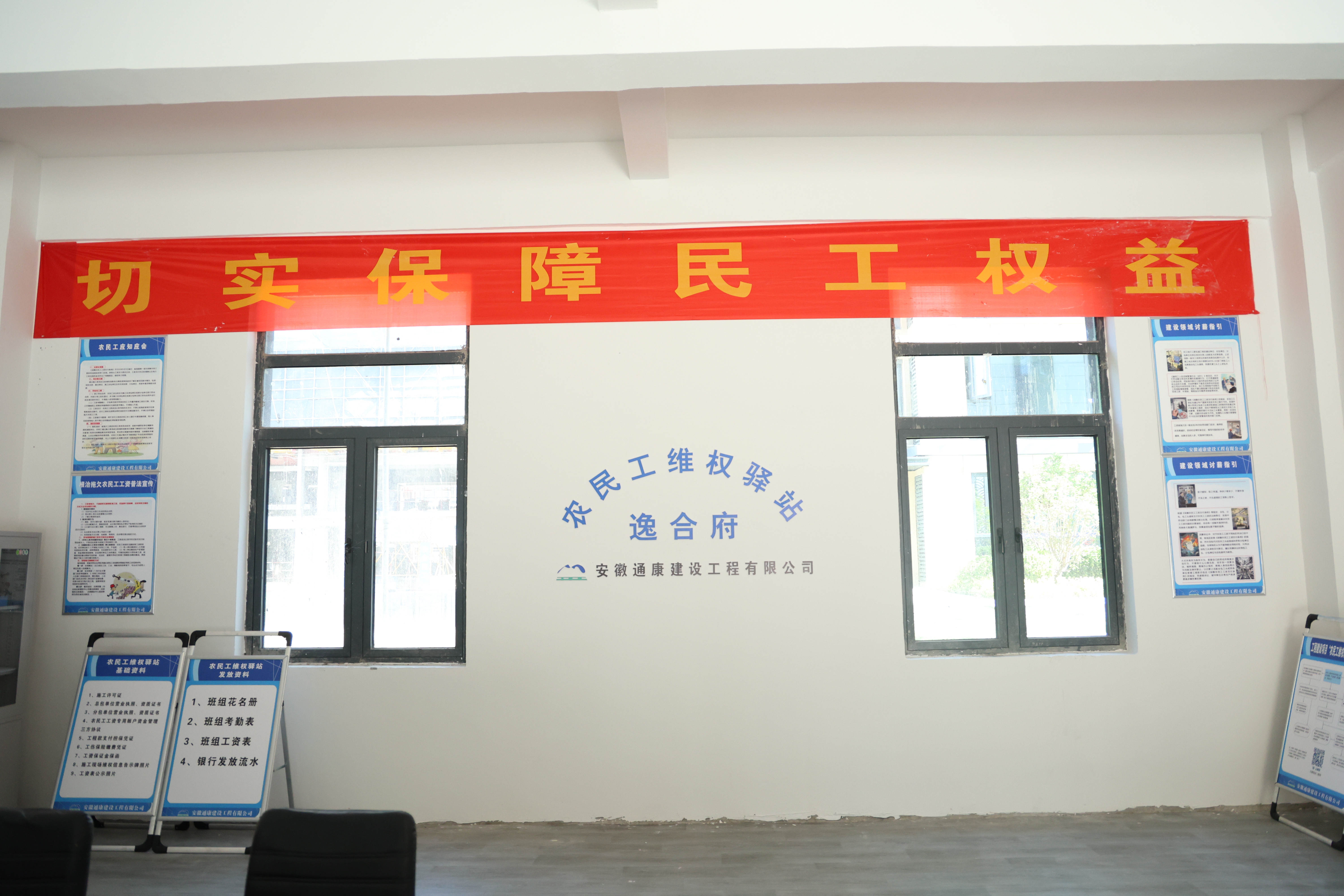 為進一步保障農(nóng)民工群體權(quán)益,近日,通康公司在亳州逸合府一期項目現(xiàn)場,正式設(shè)立了“農(nóng)民工維權(quán)驛站”,旨在全方位保障工友的維權(quán)需求,讓工友們無憂工作。