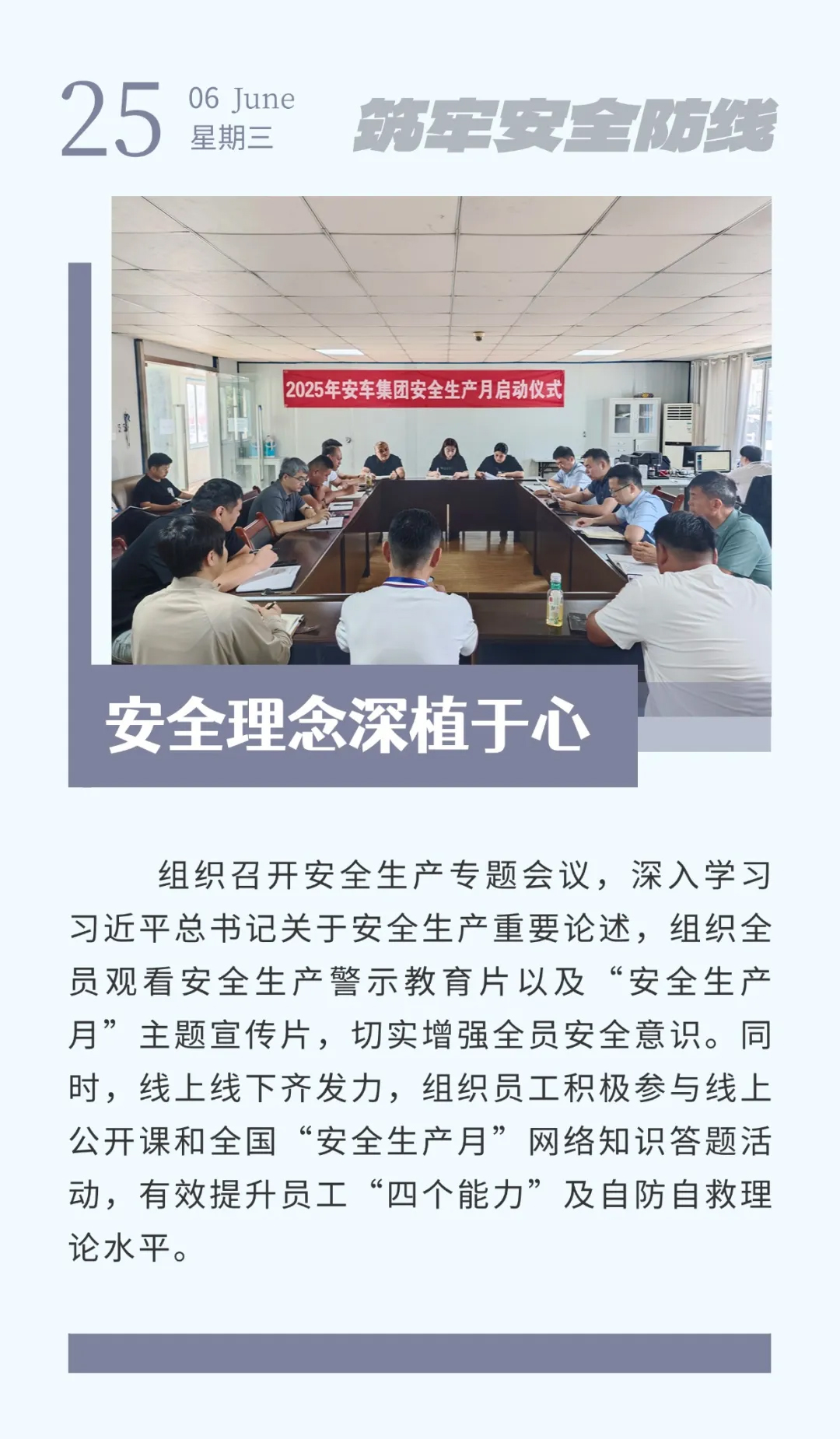 為深入貫徹“人人講安全、個(gè)個(gè)會(huì)應(yīng)急”安全理念,6月以來(lái),安車集團(tuán)系統(tǒng)部署、多措并舉,扎實(shí)開(kāi)展“安全生產(chǎn)月”系列活動(dòng)。通過(guò)宣教結(jié)合、實(shí)戰(zhàn)演練、隱患整治等舉措,全面提升全員安全素養(yǎng)和應(yīng)急處置能力,為公司安全運(yùn)行筑牢防線。