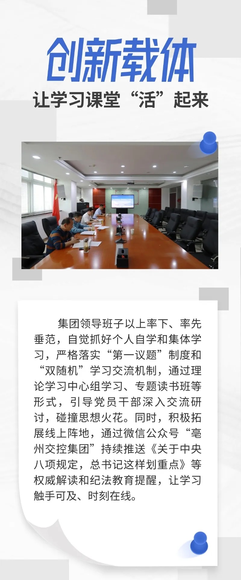 集團(tuán)將持續(xù)深入學(xué)習(xí)領(lǐng)會(huì)和貫徹落實(shí)中央八項(xiàng)規(guī)定及其實(shí)施細(xì)則精神,不斷推動(dòng)學(xué)習(xí)教育走深走實(shí),以作風(fēng)建設(shè)新成效賦能集團(tuán)高質(zhì)量發(fā)展。