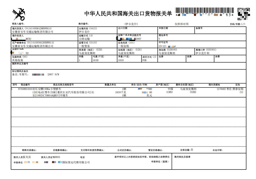 本次出口車輛為長(zhǎng)安牌深藍(lán)SL03,經(jīng)過嚴(yán)格的檢測(cè)、整備與認(rèn)證,全面符合出口目的國(guó)的相關(guān)標(biāo)準(zhǔn)和要求。9月8日,安車集團(tuán)成功獲取首臺(tái)二手車出口許可證,為車輛出海按下“加速鍵”。車輛于9月27日完成全部報(bào)關(guān)流程,經(jīng)公路運(yùn)輸從伊爾克什口岸發(fā)往烏茲別克斯坦,最終交付海外客戶。