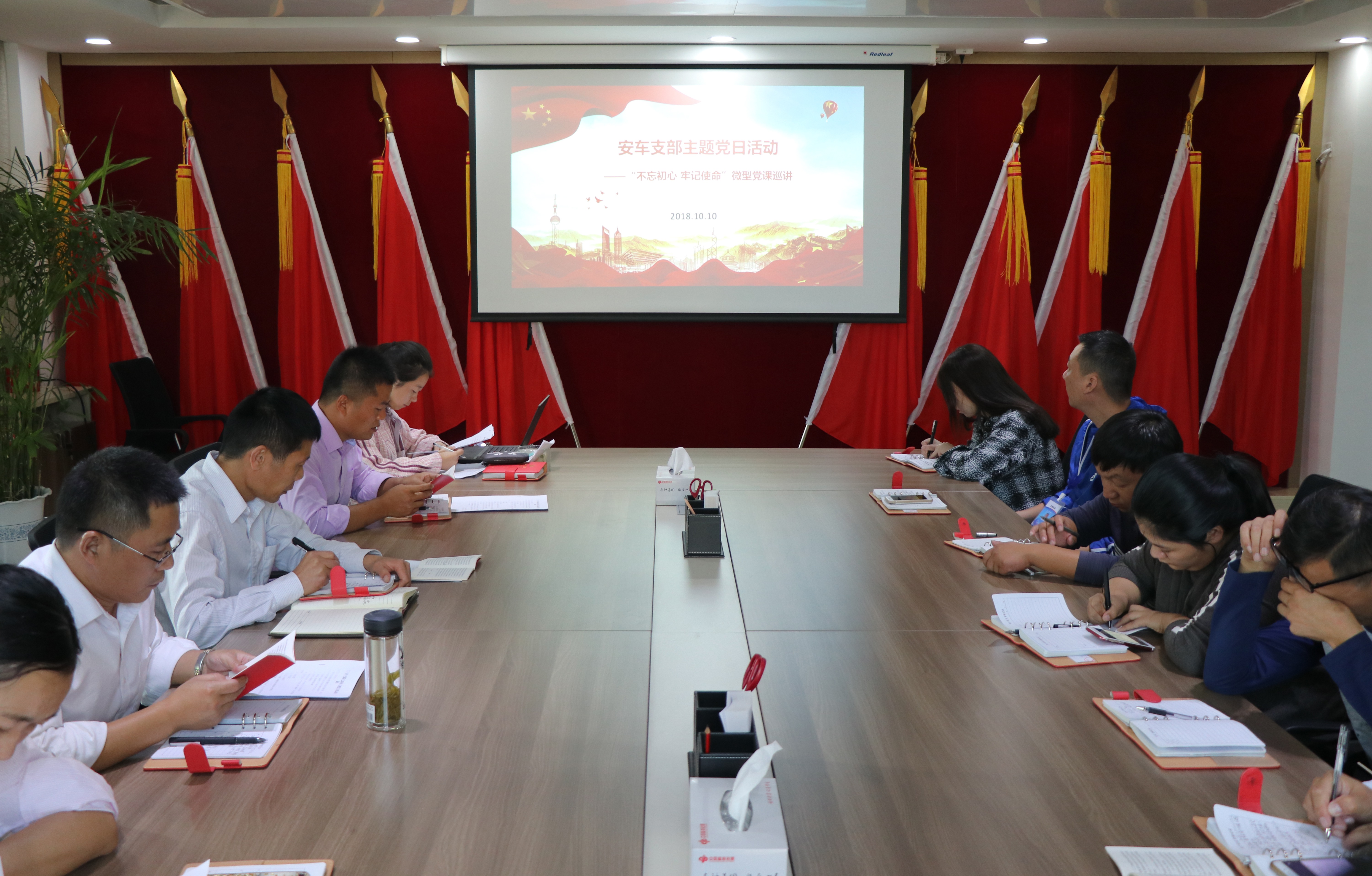 10月10日下午,安車交通黨支部在黨員活動(dòng)室開(kāi)展10月主題黨日活動(dòng),活動(dòng)以“不忘初心 牢記使命”為主題講微型黨課的形式展開(kāi)。支部組織委員張棟生主持會(huì)議,全體黨員、預(yù)備黨員參加會(huì)議。