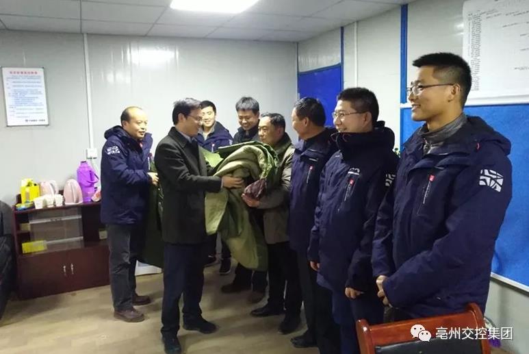 在對南站項目持續(xù)靠前指揮的同時,考慮到項目主體建設(shè)施工的商砼澆筑幾乎全部在夜間進(jìn)行,且冬季入夜的氣溫低至-7至-10度,集團(tuán)領(lǐng)導(dǎo)始終牽掛著堅守項目一線人員在夜間防寒保暖和身體健康,集團(tuán)黨委書記、董事長王鍇,副書記、總經(jīng)理劉超在深入工地一線時多次提出要做好夜間安全生產(chǎn)和防寒保暖工作,要求根據(jù)情況夜間適時增加工作餐并決定為集團(tuán)派駐代表全員配備棉衣。1月19日晚,集團(tuán)黨委副書記、紀(jì)委書記魏孛帶領(lǐng)紀(jì)檢審計部、辦公室工作人員為正在討論頂板澆筑的集團(tuán)一線技術(shù)人員每人送上一條棉大衣。接過帶著集團(tuán)期望和關(guān)懷的棉衣,一線人員表示,決不辜負(fù)集團(tuán)重托,保質(zhì)保量完成任務(wù)。