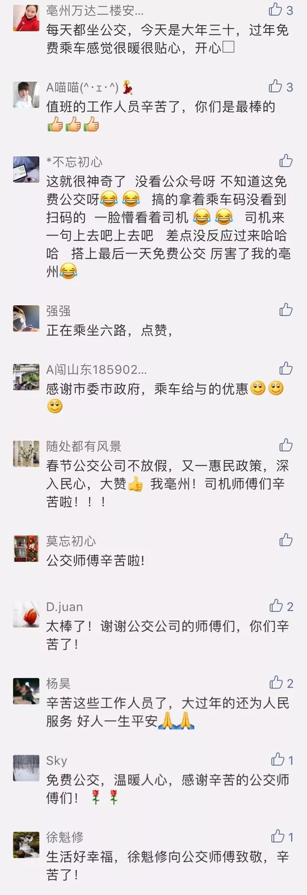 乘客李女士表示,自己平時(shí)上班都會(huì)乘公交去單位,發(fā)現(xiàn)亳州公交的優(yōu)惠活動(dòng)特別多,之前“五一”假期期間也開(kāi)展了“免費(fèi)乘公交”活動(dòng),每年的“公交宣傳周”也給市民帶來(lái)不少福利,亳州公交真是一心為民,真正為老百姓著想呀!