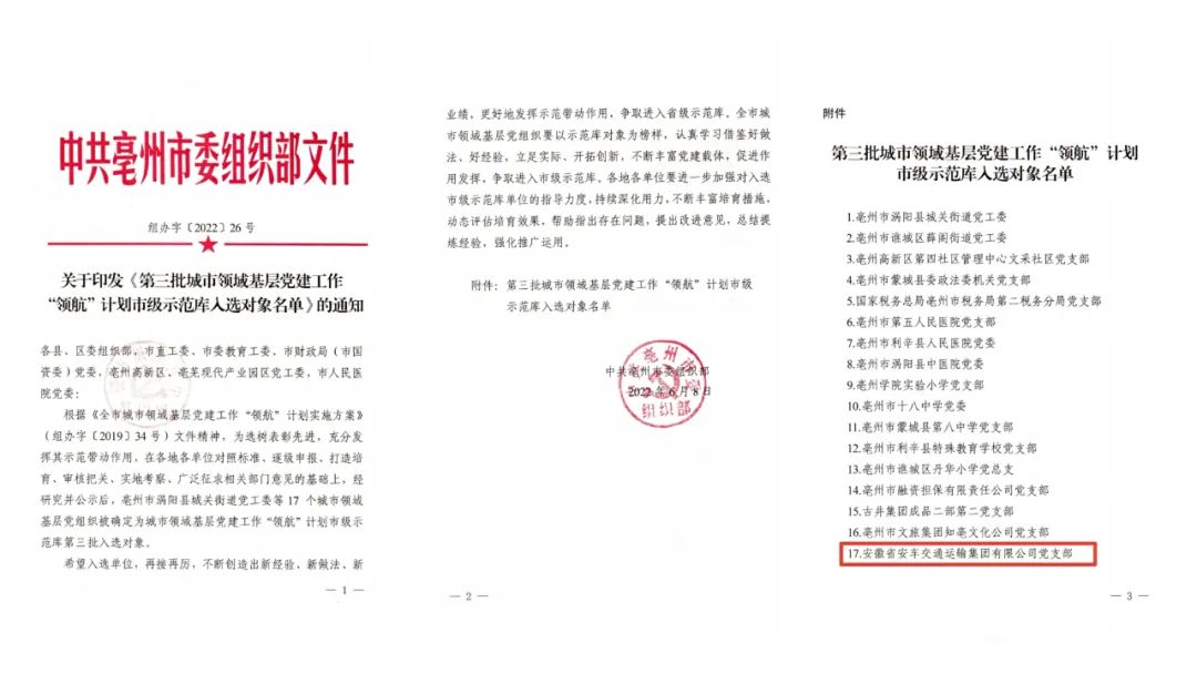 近日,市委組織部下發(fā)了《第三批城市領(lǐng)域基層黨建工作“領(lǐng)航”計(jì)劃市級(jí)示范庫(kù)入選對(duì)象名單》,安車交通黨支部入選第三批城市領(lǐng)域基層黨建工作“領(lǐng)航”計(jì)劃市級(jí)示范庫(kù)。 近年來,安車交通黨支部堅(jiān)持以習(xí)近平新時(shí)代中國(guó)特色社會(huì)主義思想為指導(dǎo),以強(qiáng)黨建凝...