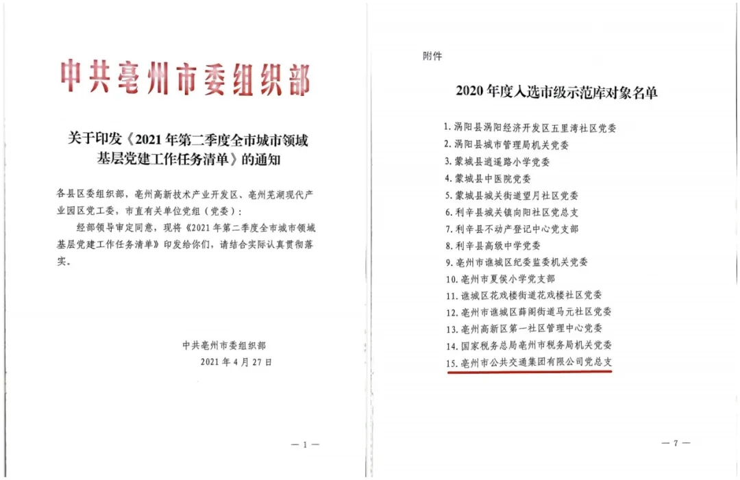 近日,市委組織部確定一批城市領(lǐng)域“領(lǐng)航”計(jì)劃示范庫名單,亳州公交集團(tuán)黨總支成功入選2020年度“領(lǐng)航”計(jì)劃市級(jí)示范庫。 近年來,亳州公交黨總支充分發(fā)揮黨組織的領(lǐng)導(dǎo)核心和政治核心作用,按照全面從嚴(yán)治黨要求,扎實(shí)推進(jìn)黨的建設(shè)各方面工作有序、深入...