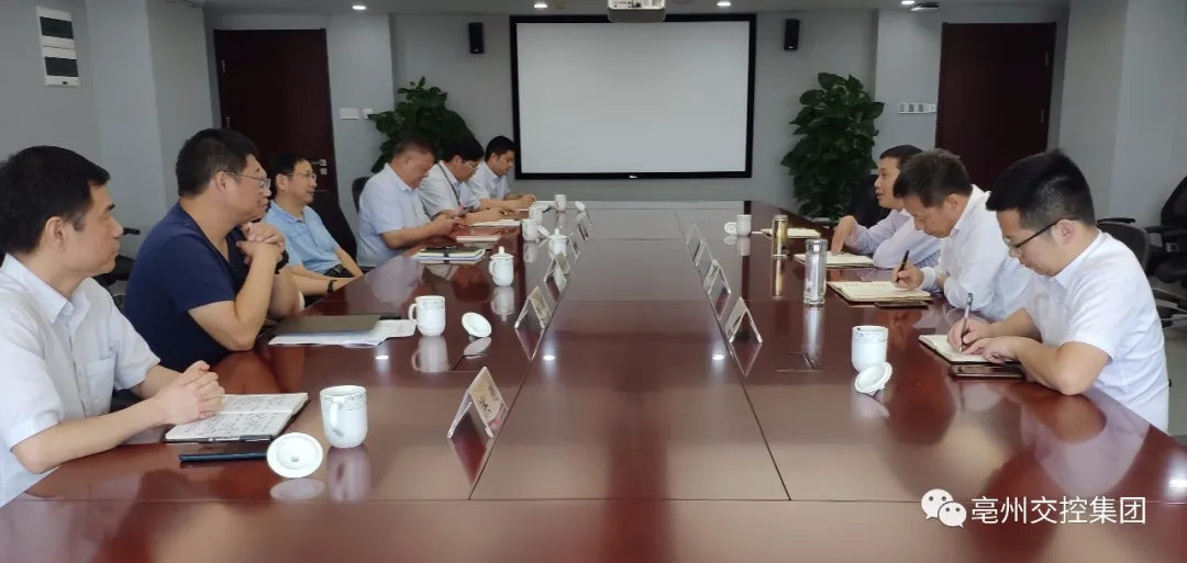 ??為學(xué)習(xí)高速公路項(xiàng)目推進(jìn)及運(yùn)營(yíng)經(jīng)驗(yàn),6月19日上午,集團(tuán)黨委書(shū)記、董事長(zhǎng)宋保眾一行赴省交控集團(tuán)拜訪交流。省交控集團(tuán)黨委副書(shū)記、總經(jīng)理錢(qián)東升,總經(jīng)理助理、投資發(fā)展部部長(zhǎng)左敦禮,界阜蚌管理公司董事長(zhǎng)曹興海等參加座談。